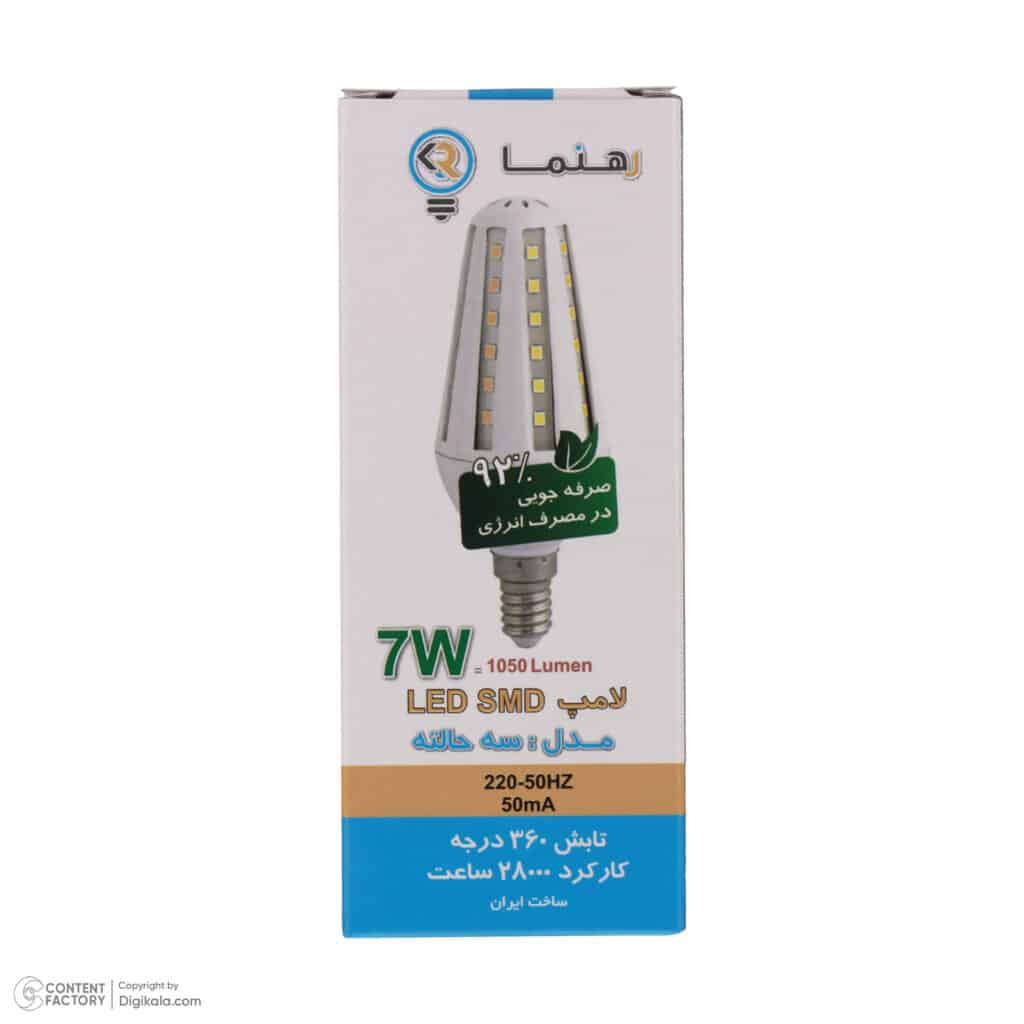 معرفی و اطلاعات کلی لامپ سه حالته لوستری پرنور 7 وات رهنما مدل شمعی پایه E14