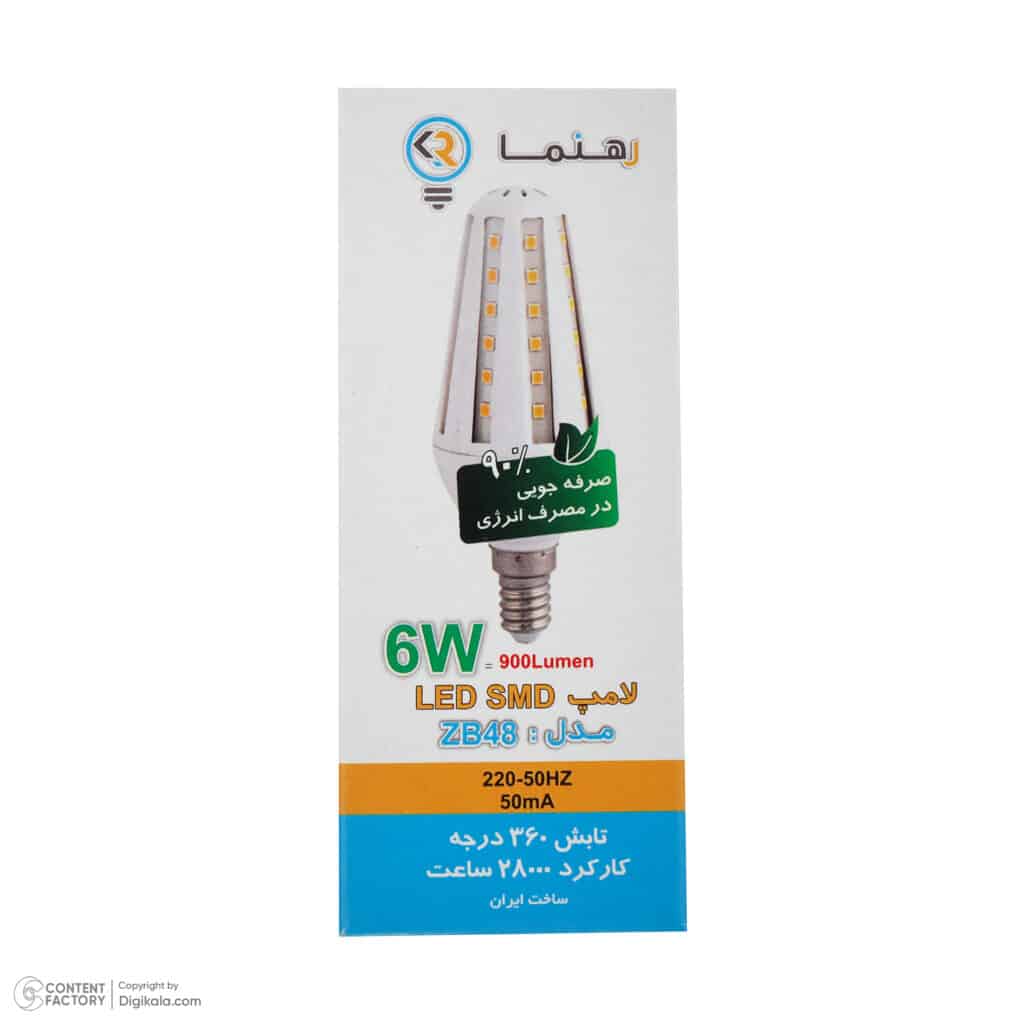 معرفی و اطلاعات کلی لامپ شمعی لوستری شفاف 6 وات LED رهنما مدل ZB48 پایه E27